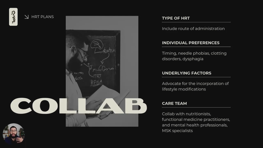 In this final introductory module, Nico outlines the structure of HRT treatment plans, emphasizing patient-centered care, customized protocols, realistic expectations, and the importance of collaboration with like-minded healthcare providers to optimize patient outcomes.